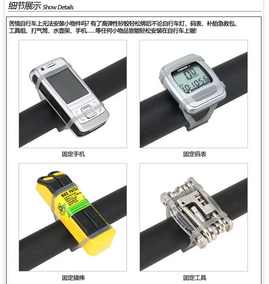 Quantity(pcs):2000Specification:Name:Bicycle Light Mount HolderSize :Approximate 2.1*14.1cm/0.82*5.54inMaterial: SiliconColor:Red Blue White BlackWeight:About 10g / 0.35ozAfter place order:If you choose to mix colors, please tell the seller the color you need;if not,will decide as seller's considerationQuality Guarantee:One year Guarantee(not including components).Items can be returned for repair within 1 year from the date you receive your merchandise.Buyer is responsible for return shipping with proper packaging.Buyer is responsible for return shipping cost and insurance.Please contact us via email before return.if meet pacakge destroyed,(once you recieve the goods. if find the goods broken ,please contact with express company, First Time. and get ''the goods broken proof ducu#ments'' and '' issue number',then can get compensation from express company ,meanwhile,you send back the broken item back by post, i will change new or repair it,i will pay for the return shipping fee )any problem,please send back by post,don't estimate the value as compensationFeedback:Once you have received your item, please leave feedback for us.Negative feedback does not resolve any underlying issues. If you have a problem, Please Contact us via email first and give us the opportunity to reasonably rectify in a reasonable amount of time. We will try to respond ASAP, and we are always willing to work things out.Contact us:For some uncontrollable factors, the item may be damaged during shipping. If you receive a broken item, Please Contact us first, we will investigate and replace, if you have any other questions please email us.We will respond within 1 business day or less. Please include item number or order number in all communications.